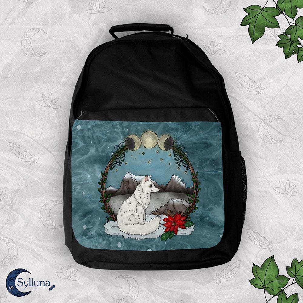 Magic of the Arctic Fox Backpack € 58,00 Make your everyday adventures a little more magical with the Sylluna backpack. The print features a hand-drawn illustration. Perfect for school, work, or a walk in nature. Carry all your essentials, from your A4 notebook to your water bottle and (small) laptop. With multiple compartments and padded shoulder straps, the backpack offers both durability and optimal comfort. SHIPPING: 3–5 business days. SPECIFICATIONS: Brand: Sylluna®. Basic Backpack Bag flap featuring a hand-drawn illustration print. Size: 40 x 30 cm (15.8 x 11.8 in), excluding handle. Professional print using high-quality printing techniques. The illustrated flap is attached with Velcro and secures with Velcro. Multiple main compartments with zippers. The bag is made of durable polyester. The shoulder straps are padded and adjustable in length. Padded back panel. The bag is water-resistant. The print is waterproof. The bag is made in the Netherlands. Detailed description Magic of the Arctic Fox Backpack quantity Add to cart SKU: TASRUG-0112-01 Categories: Backpack, Bags Tags: Magick of the Arctic Fox Illustration Beschrijving Interior This sturdy backpack is perfect for everyday use. It’s a comfortable and practical bag where you can safely store and carry your belongings. There’s plenty of space for your daily essentials, such as your laptop and an A4 notebook. The backpack has three main zippered compartments: two large compartments (the back one includes an additional zippered inner pocket) and a smaller front compartment located under the flap with the illustration. One of the shoulder straps also features a small pocket with Velcro, and on the right side of the bag there is an open pocket for a water bottle. Material & Quality The backpack is made from high-quality materials and is a sturdy polyester bag. The illustration is printed with sharp detail, and because it is deeply embedded into the fabric, the print won’t peel. The backpack is water-repellent, and the print is waterproof. Shoulder Straps & Padding The shoulder straps are adjustable, allowing you to set the backpack at a comfortable height that suits your size. Both the back panel and the shoulder straps are padded for comfort and breathability. ABOUT THE DESIGN All Sylluna illustrations are hand-drawn and inspired by fantasy, nature, and magic. The illustration was first sketched and then digitally colored. Analog textures were used in the process, including hand-made marbled paper. ✦ View more magical products featuring this illustration Actual colors may vary slightly due to different screen settings. Sylluna®