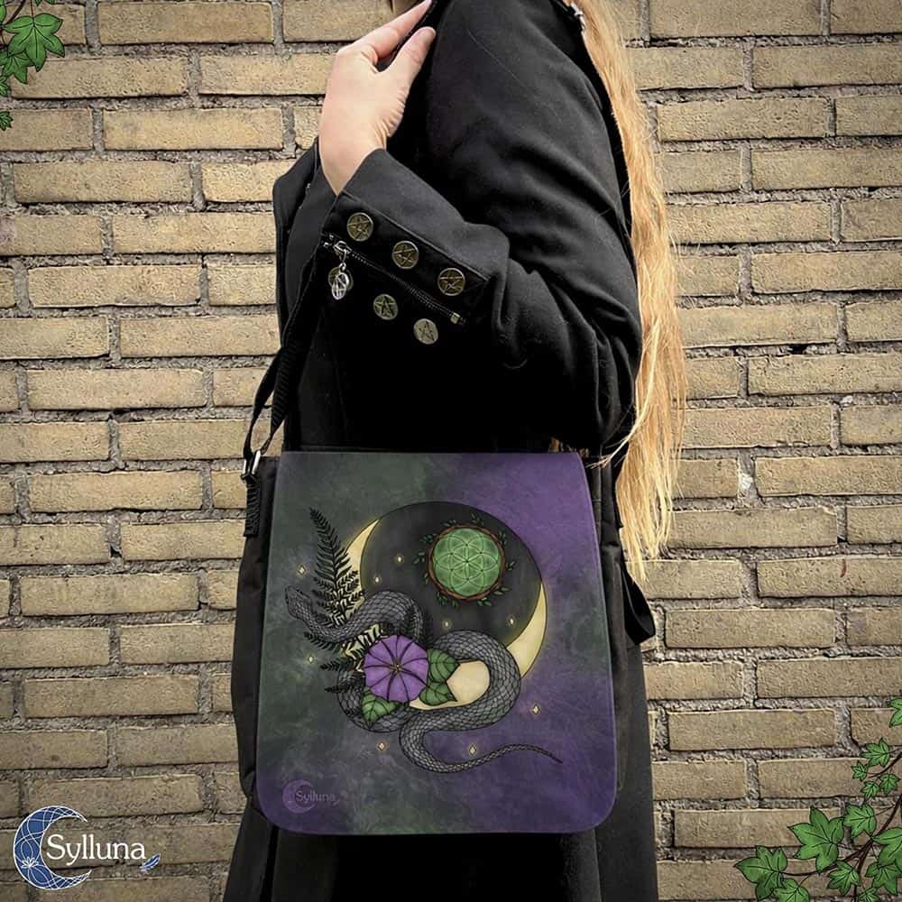 Magie van de Slang – Vierkant Schoudertas Groot € 49,00 Schoudertas met verwisselbare flap. Een tas voor wie zich aangetrokken voelt tot de slang. Voor wie transformatie omarmt en meebeweegt in de stroom van het leven. De slang kronkelt om de maan, een symbool voor vrouwelijke energie. De varen en maanbloem staan voor onverwoestbaarheid & groei (ook in donkere tijden). Het design is afgewerkt met het ‘seed of life’ symbool binnen takken, als symbool voor het aantrekken van positiviteit. Handgetekende illustratie, exclusief ontworpen voor Sylluna Verwisselbare flap, wissel eenvoudig van design zonder een nieuwe tas te kopen Professioneel in de stof geprint, geen losse printlaag Stevig geproduceerd en geschikt voor dagelijks gebruik Verstelbare schouderband Ruim formaat, geschikt voor je essentials én een A5 journal VERZENDING: 3-5 werkdagen Verzendkosten €8,50 binnen NLGratis verzending vanaf €125 ⭐ Klanten beoordelen onze tassencollectie met 4,8+ sterren Uitgebreide beschrijving Magie van de Slang – Vierkant Schoudertas Groot aantal Toevoegen aan winkelwagen SKU: TASVG-0134-01 Categorieën: Tas Vierkant Groot, Tassen Tags: Dierentassen, Magie van de Slang Illustratie Beschrijving SPECIFICATIES: Merk: Sylluna®. Basistas Schoudertas Vierkant Groot. Tasflap met print van een handgetekende illustratie. Afmeting: 25 x 26 x 6 cm (9.8 x 10.2 x 2.4 inch) Professionele afdruk met hoogwaardige kwaliteit druktechnieken. De illustratieve flap is bevestigd met- & sluit met klittenband. De tas is voorzien van 3 hoofdvakken met rits. De tas is gemaakt van sterk polyester. De schoudertasband is in lengte verstelbaar. De tas is waterafstotend. Het drukwerk is watervast. Zeer geschikte tas voor dagelijks gebruik. De tas wordt gemaakt in Nederland. Indeling Deze vierkante tas heeft genoeg ruimte voor al je dagelijkse spullen te denken aan je portemonnee, je sleutels, A5 notitieboek, agenda en/of tablet en meer. De tas heeft drie hoofdvakken (een groot hoofdvak, een klein tussenvakje en een voorvak). Alle drie de vakken zijn afsluitbaar met een rits. In grote vak zit nog een extra subvak (met rits) en een extra vakje zonder rits. Het is een zeer geschikte tas voor dagelijks gebruik. Met deze tas hou je je spullen veilig bij je. Materiaal & Kwaliteit De tas is gemaakt van hoogwaardige materialen (het is een stevige stoffen/polyester tas) en de illustratie is scherp geprint. De illustratie is diep in de stof gedrukt. Hierdoor is er geen risico dat de illustratie van de stof afbladdert. Verwisselbare Tas Flappen De illustratieve flappen zijn te bevestigen en los te maken door middel van stevig klittenband. Hierdoor kun je in een handomdraai wisselen tussen verschillende designs. Dit bundelproduct bevat zowel de basistas als de getoonde flap. Zo heb je een compleet product. Naar wens kun je losse tasflappen in het juiste formaat bijbestellen, waardoor je kunt wisselen van design. Schouderband De lengte van de schouderband is verstelbaar, waardoor je de tas kunt afstellen op een draaghoogte die past bij je lengte en die je zelf prettig vindt. OVER HET DESIGN Alle illustraties van Sylluna zijn handgetekend en geïnspireerd door fantasy, de natuur en magie. De illustratie is eerst geschetst en vervolgens digitaal ingekleurd. Daarbij is gebruik gemaakt van analoge texturen, waaronder handgemaakt marmer papier. ✦ Bekijk meer magische producten met deze illustratie Daadwerkelijke kleuren kunnen iets afwijken vanwege verschillende beeldscherminstellingen. Sylluna®